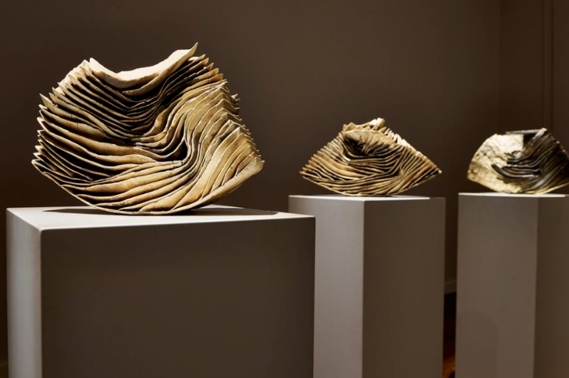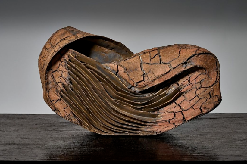 Yukiya Izumita生于1966年,当代陶艺家。在没有熟悉他的作品材质的情况下,会以为是石雕作品,但却是柴烧。他将传统的陶瓷艺术进行了向当代的升华,从视觉质感做出改变。作品表面的肌理丰富,波浪状的肌理是整件作品的特征。他的作品散发着浓郁的侘寂美学特征。Yukiya Izumita说:“当我尝试创造一些东西时,我会朝着薄、粗糙和脆弱的方向前进,并以紧张和轻盈的方式寻找答案。纸张和泥土为他们说话,前者呈现出无限的形状,而后者则呈现出丰富的外表。”